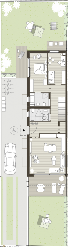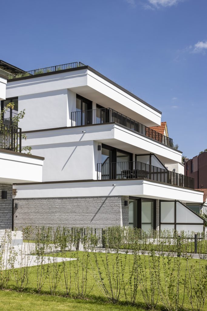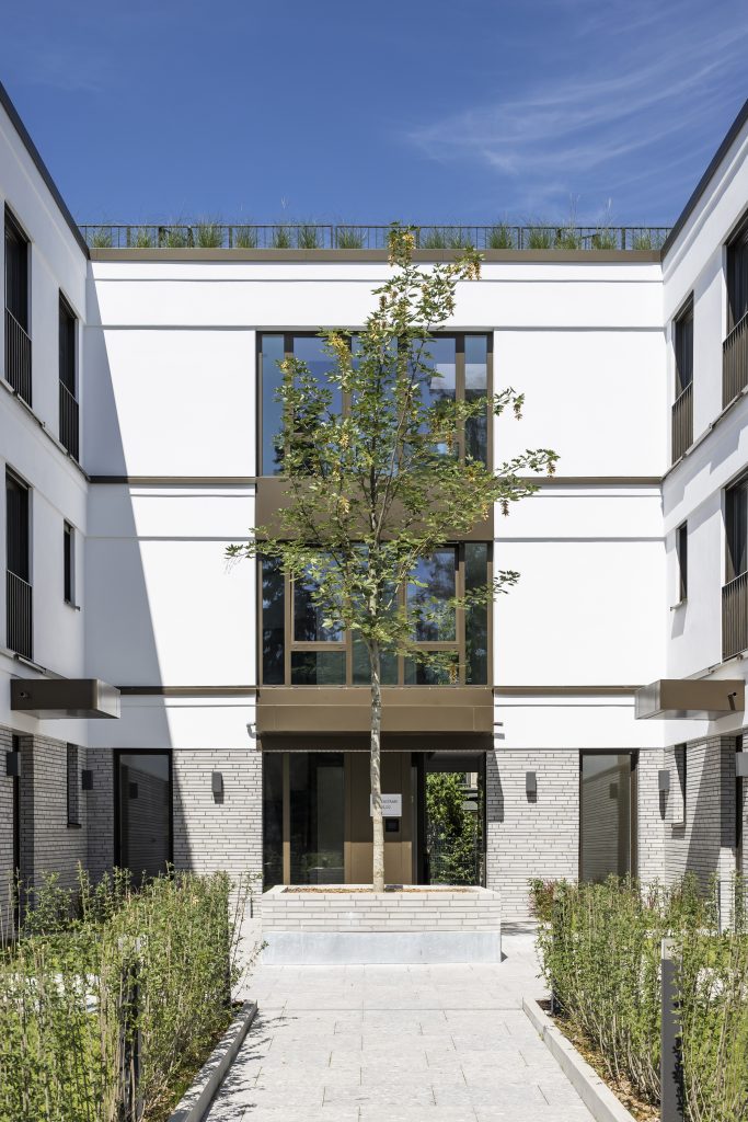 Das Bauvorhaben präsentiert sich als eine ansprechende Immobilienentwicklung, bestehend aus zwei Terrassenhäusern mit insgesamt 14 Wohneinheiten im KfW-55-Standard eines überdurchschnittlichen Nachhaltigkeitskonzepts. Als Beispiel konnten wir durch die Verwendung von Geothermie über eine Sole-Wasser-Wärmepumpe sowohl das Heizen als auch das Passivkühlen des Gebäudes ermöglichen. Auch die Errichtung nutzbarer begrünter Dachflächen wird dazu beitragen, das Mikroklima zu verbessern.